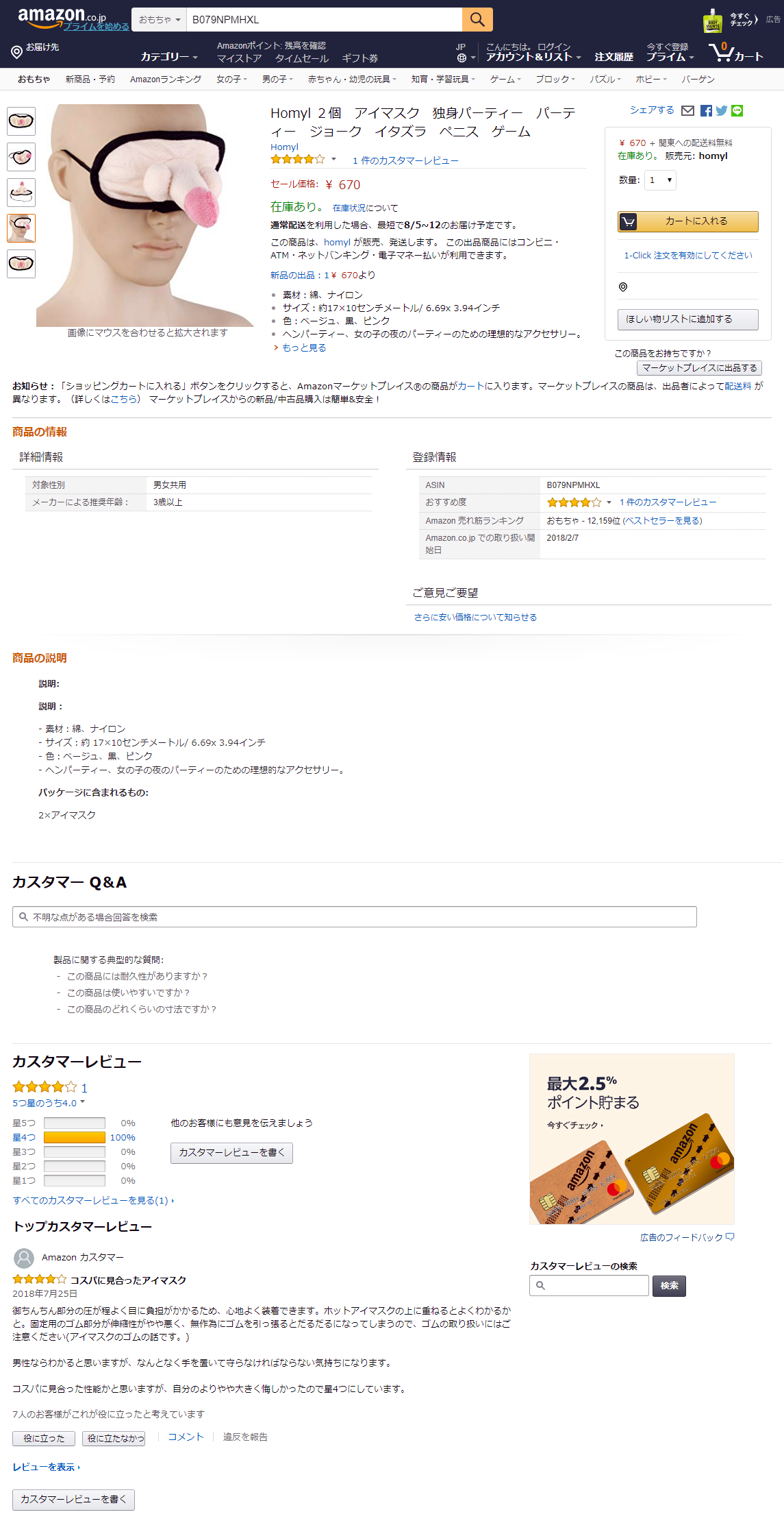 そしてこのアイマスクのカスタマーレビュー。