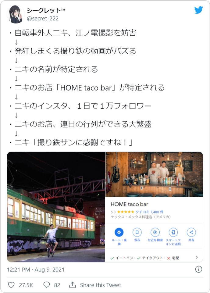 撮り鉄に罵倒されたにもかかわらず明るく対応し、騒動をネタにする度量も持ち合わせたため、お店の繁盛にも繋がることとなりましたが、「だから良かった」で済ませてはいけないと思います。