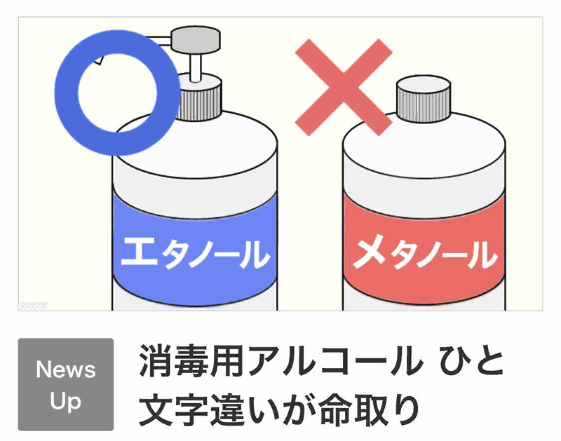 それはあたかもエタノールとメタノールを間違えるようなもの。
