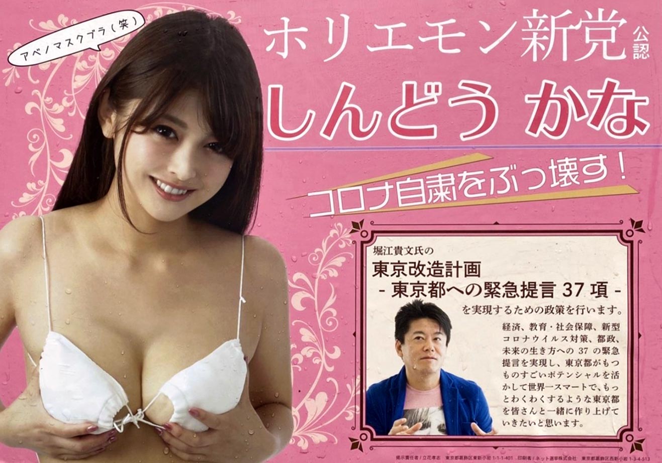 当選の暁にはこのアベノマスクブラを「ポロリと外しマスク!!」とのこと。